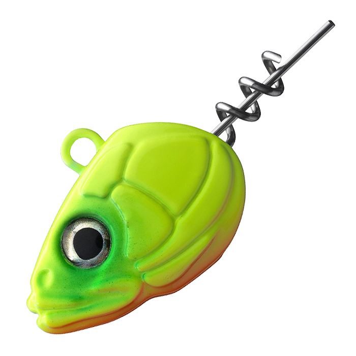 Realistic, fish-shaped screw-in head. Can easily be screwed into any soft plastic lure. Due to 6 different colors, the head can easily been aligned to nearly all kind of lures. The top side has a broad profile, which cares for a slight, additional lure action during retrieving. The big eyelet at the head also fits with split rings. With extra thick varnish. Lead-free.