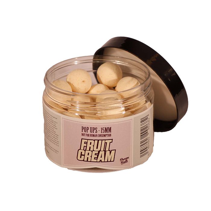 The fluorescent white pop-ups from Fruit Cream are available in 12 & 15mm in a sealable pack. The Fruit Cream Pop Ups consist of a series of two attractors that scored high in aquarium tests in a new blend. A delicious creamy smell with a fruity touch and a striking white colour that will not only appeal to carp! The pop-ups are provided with extra liquid attractors that make them extremely attractive. The pop-ups are chod-proof and have a minimum buoyancy of 48 hours.