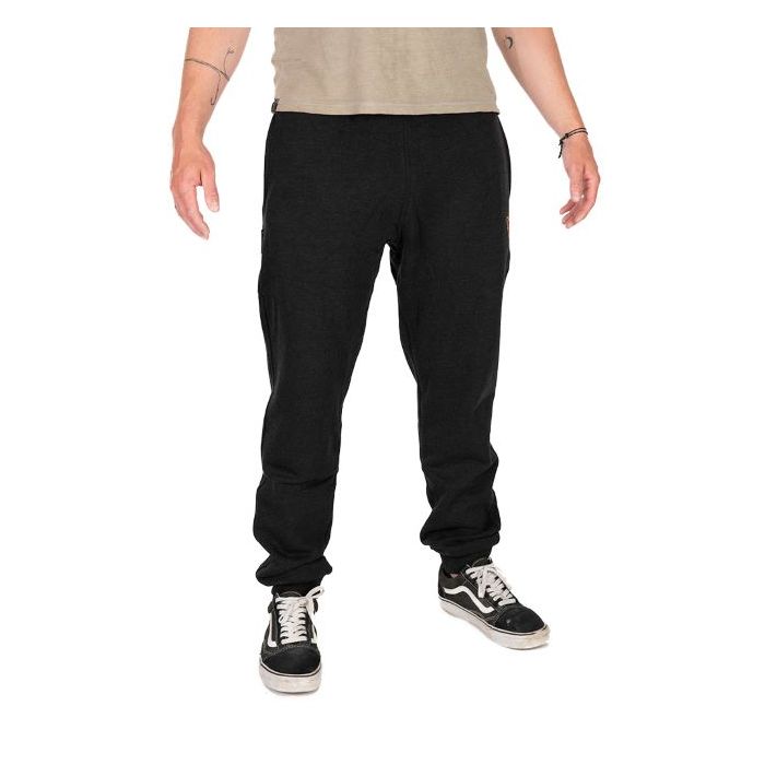 Eine schwarz melierte Jogginghose mit organgenfarbenem Fox Logoaufdruck, einem elastischen Hüftbund mit internem Fox Logo, Silikon-versiegelten Kordeln und einer Gesäßtasche mit Hook´n Loop-Sicherheitsverschluss.