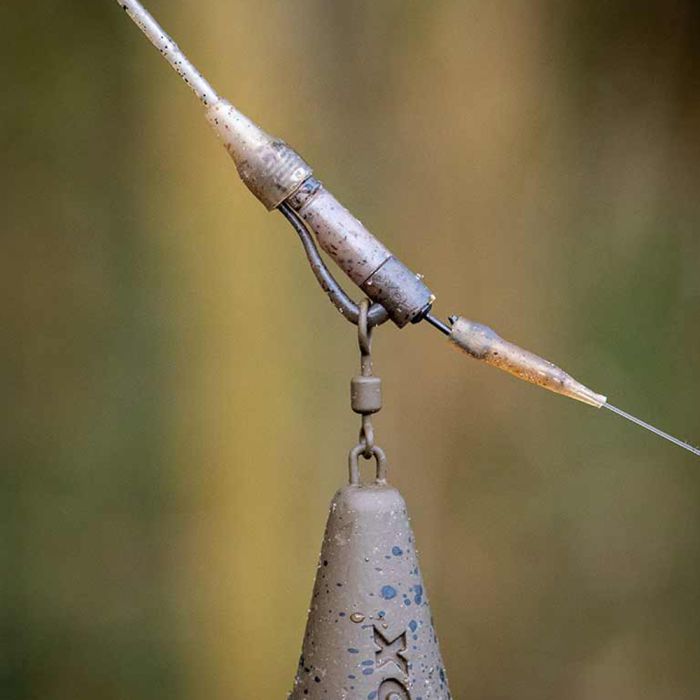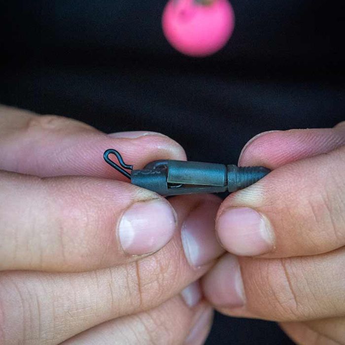 Brand new patented design Tubing Lead Clip that grips and holds tubing inside the lead clip, ensuring it does not slide up the line like it can do with other clips. When using tubing to pin down mainline or to protect the flanks of fish its essential that the tubing does not travel up the line during the fight otherwise your mainline could lift scales causing damage to the fish. The Tubing Lead Clip ensures the tubing can’t slide up the line. It features a side window that allows access inside to thread on a locking funnel (witches hat) to the mainline that’s pushed into the tubing. When this window is replaced the peg feature locks the swivel and the tubing in place preventing the tubing from slipping loose out of the clip. The precise fitting tail rubber allows the lead to pull off the clip in the event of it becoming snagged but unlike with other clips the tubing will not get dragged up with it.