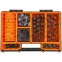 Heavy duty robust feeder storage system; Compact yet spacious design; Water resistant seal; X2 Heavy duty locking catches; Tinted super strong lid; Bespoke multi compartment storage; Interchangeable inserts to suit each individual angler and their angling style; Inserts design to suit a range of Guru feeders and accessories; Multi positional storage options; Inserts available separately; Compatible with Guru Accessory cases; Complete with sticker labels for identifying inserts and different Feeder systems.; Designed to Fit inside the Fusion Luggage range; Easily stackable for storage; Extra 4 and 6 Compartment Accessory cases to organise smaller terminal items; The basic box includes; 2x Standard Feeder trays; 1x Spool Tray; 1x Divided Tray; 1x Shallow Divide Tray; 1x Rig Tray;