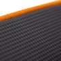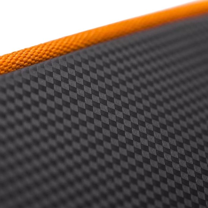 Carbon effect leather material provides a stylish, tough, easy clean outer surface.