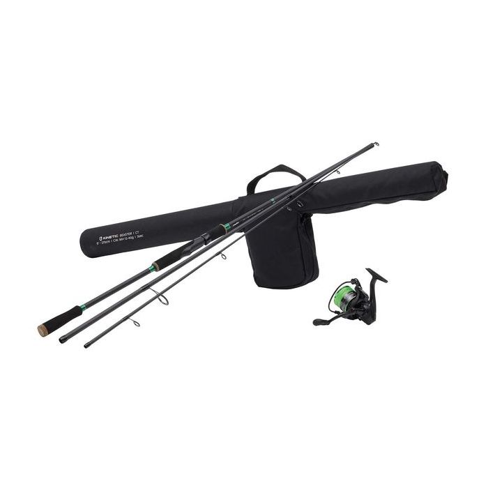 Being smooth and effective on the water starts with your gear. The Kinetic Beaster CT spinning combo delivers slick, precise casting and retrieving to help you perform at your best every time out. Smooth and trouble-free, the spinning reel enhances your time on the water. It features a strong, durable graphite frame and rotor, double-anodized aluminum spool, and a quality five-bearing (4+1) system including instant anti-reverse. Its front drag is smooth, sure and easy to adjust. Comfortable rubber handle knob provides a firm grip in all weather. Comes with Kinetic 4-braid on the spool. The performance-matched spinning rod offers superior strength and sensitivity in an extremely lightweight package. The Kinetic Beaster CT rod is built on a premium high-tensile carbon blank and topped with lightweight single foot guides, split-grip EVA handle and screw-down reel seat. Great combo for perch, zander and trout.