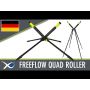 Unique push button 180 rotating leg mechanisms; Leg mechanism allows the legs to be locked in 5 angled positions; Enlarged triple extending legs (max height 1490mm); Compatible with the Freeflow Leg Extensions (available separately); Oversized leg extrusions for extra durability and stability; Quick release camlocks on all legs; Extruded soft EVA rollers to maximum a smooth motion; Stainless steel sealed bearings in both main rollers; Foldable uprights to prevent your pole from getting blown out; Carabiner fixing for attaching weights; Provided in durable padded carry case; Weight: 3.8kg; Storage dimensions: 205mm x 720mm