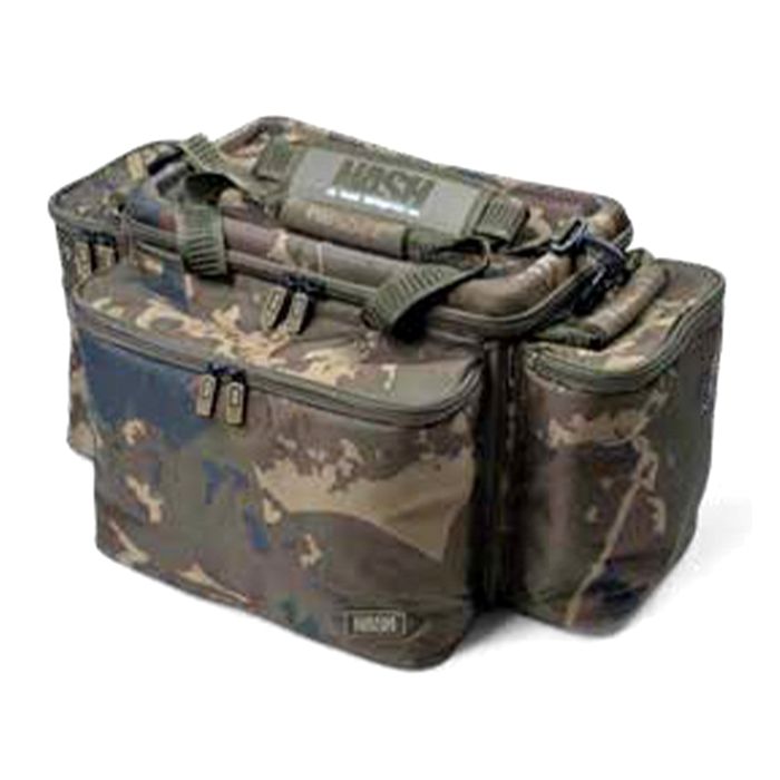 Nash Subterfuge Carryall - Medium / 50L, Nash Subterfuge Carryalls, a tough and rugged series of high quality holdalls featuring the same design and layout and available in a series of size options. With all the bags in the range coming with either a Small 30 Litre, Medium 50 Litre or Large 65 Litre capacity. All three with full width external pockets for flexible tackle storage compatible with Nash tackle boxes and accessory bags. With an additional zipped mesh under lid pocket, a detachable padded adjustable shoulder strap and Wipe clean, waterproof reinforced base.