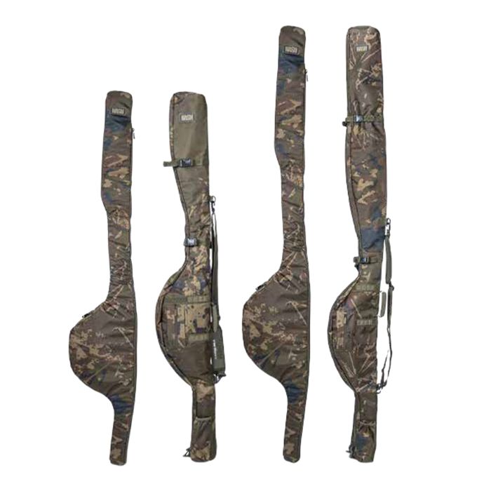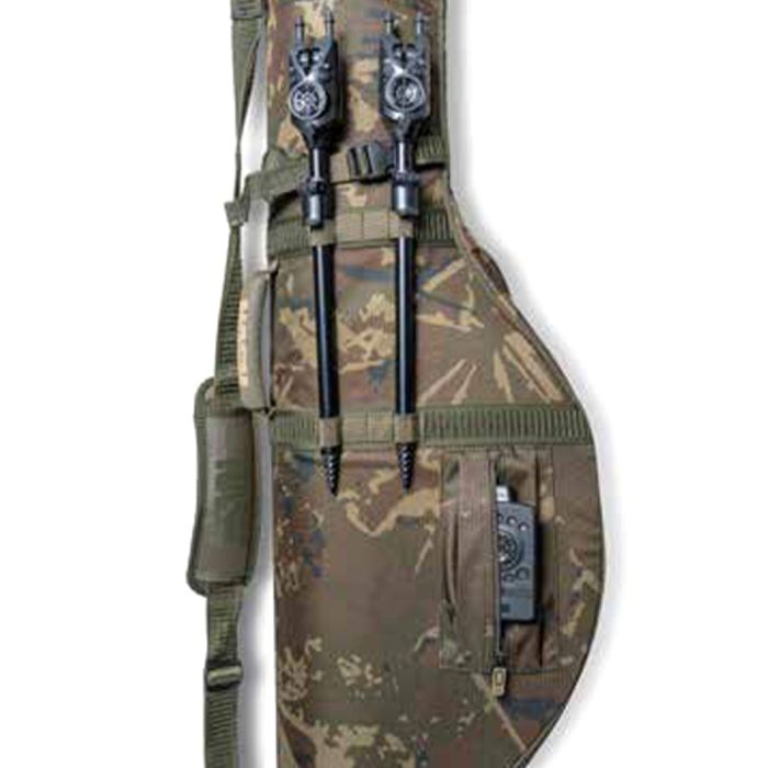 Nash Subterfuge Soft Protect Rod Skins, a high quality luggage range from Nash available with a 1, 2 or 3 rod capacity and in 10 and 12ft size options. With all the rod skins having enough room to accommodate larger big pit reels and 50mm butt rings. With additional stiffened tip protection and a central anti snag double zip puller plus a wide mouth reel pouch for easy adding or removal of rods. The 2 and 3 rod versions also have 4 pairs of elastic loops on rod skins for banksticks or distance sticks. The Single Soft Protect Skins are designed to fit into the base pouches on 2 and 3 Rod Soft Protect Skins to expand their capacity.