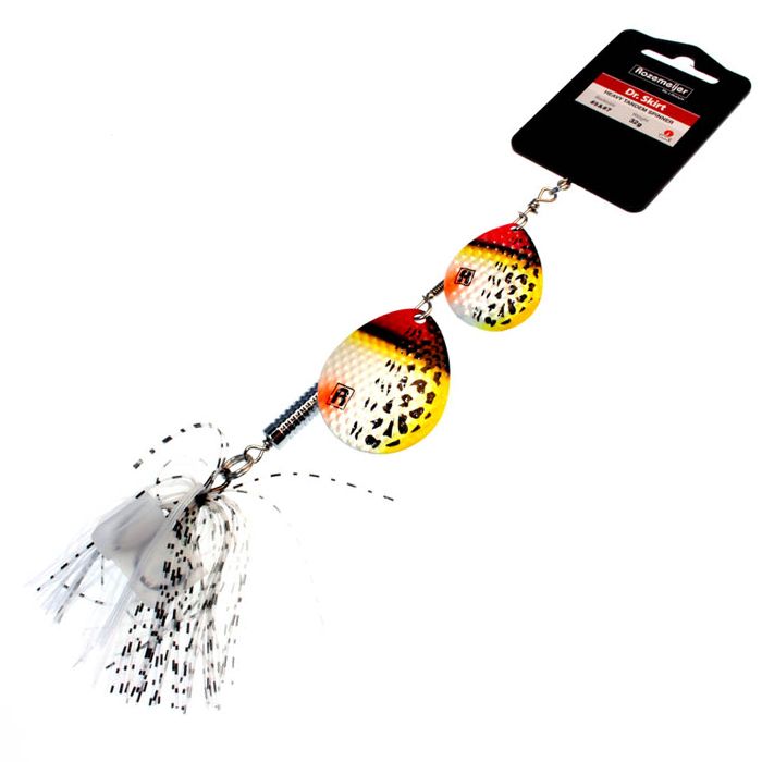 The Rozemeijer Dr. Skirt Tandem Fishing Lure is loved by anglers and the fishermen. With blade sizes #5 & #7, this tandem spinner causes a lot of vibration, and that never goes unnoticed for long!