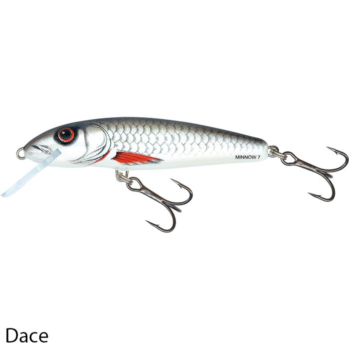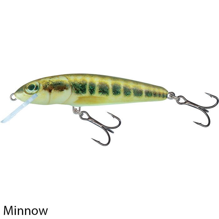 Salmo Minnow gibt es in 5, 6, 7 und 9cm längen und als schwimmende (F), sinkende (S) und super tiefe Läufer (SDR)-Versionen. Salmo Minnow hat bereits Tausende von Raubfischen in Seen und Flüssen verführt, auf allen Kontinenten.