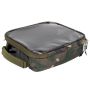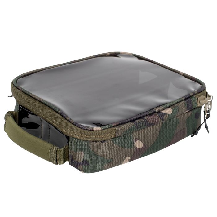 Trakker NXC Camo Bitz Pouch Large  The Trakker NXC Camo Bitz Pouch Large allows you to keep larger terminal tackle items and carp fishing accessories neatly organised. This tackle bag offers a customisable tackle and accessory storage solution thanks to the internal divider system. Perfect for storing a range of carp fishing tackle from leads and terminal tackle to even bivvy lights and power packs. This Trakker tackle bag features a internal divider system that is customisable allowing you to change the storage of this tackle bag to suit your specific carp fishing requirements. For easy access, this bag features dual heavy duty access. Trakker have used a smoked PVC on both the lid and sides on this tackle bag to allow for quick identification of the contents when it is closed, allowing you to save time on your carp fishing session. The base of this tackle bag is made from hard wearing waterproof PVC to ensure that no water can seep into the accessory bag from underneath. To protect the contents of this tackle bag, the base and sides have been padded for added protection. For easy manoeuvrability in an out of fishing carryalls and carp fishing rucksacks there is a neoprene grab handle positioned on the top of the Trakker NXC Bitz Pouch. Finished off in a n-dura performance fabric with the trademark Trakker DPM camo pattern, the Trakker NXC Bitz Pouch Large tackle bag is a great addition to any carp anglers gear. Trakker NXC Camo Bitz Pouch Large Tech Spec: Dimensions: 25cm (L) x 21cm (W) 7cm (H) cm Weight: 0.25kg Material: Polyester