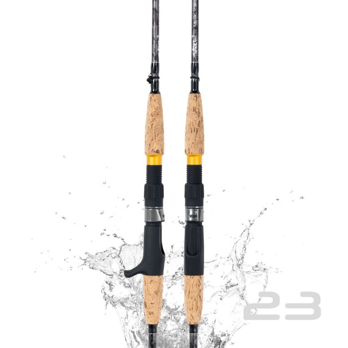 MAGIC V-BAITCAST rods are also designed for fishing from a boat, kayak or bellyboat, but only in combination with a baitcast reel. They can be used for vertical fishing, fishing with catfish clonk and drifting with a float. The 10kg model is designed specifically for spinning. There are four models in the V-BAITCAST series, the 10, 15, 18 and 23 kg version. So you can adapt your rod choice to your fishing technique, lure/bait size and the size of the catfish at your location.