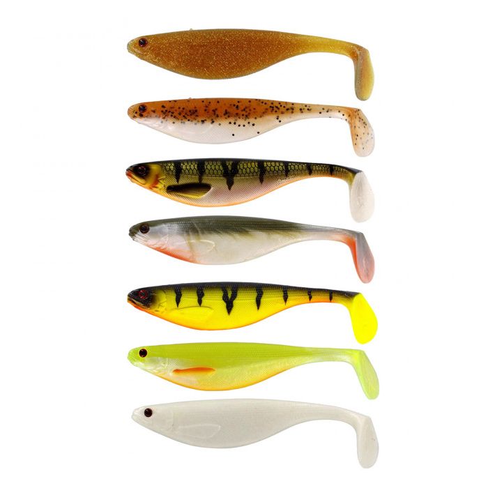 Andere Gummifische können sich eine Scheibe abschneiden, denn der ShadTeez ist bis ins kleinste Detail perfekt. Der hohe Körper, die schlanke Schwanzwurzel und der große Paddelschwanz erzeugen schon bei geringer Geschwindigkeit ein Bewegungsmuster, bei dem der Köder stark um seine eigene Achse rollt und die Flanken immer wieder aufblitzen lässt - ideal für große Räuber.